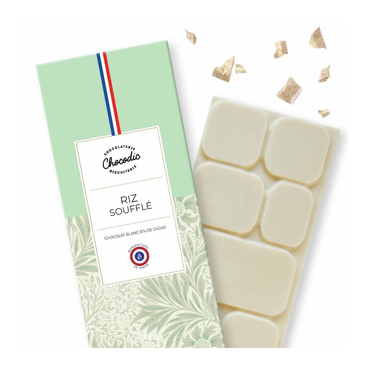Vous cherchez à ajouter une touche de douceur à votre quotidien ? Notre tablette de chocolat blanc au riz soufflé est le choix parfait. Fabriquée artisanalement, cette délicieuse friandise marie à la perfection la douceur crémeuse du chocolat blanc, riche de 31% de cacao, et le croquant irrésistible du riz soufflé. Découvrez pourquoi cette tablette de chocolat est l'option idéale pour tous les amateurs de chocolat et les gourmets exigeants.