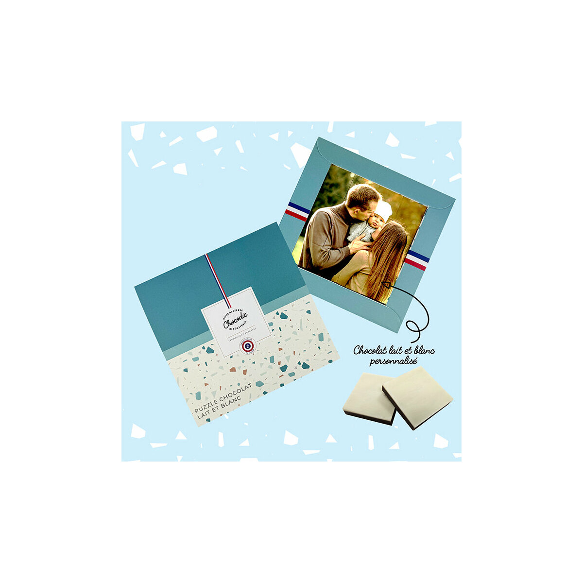 Grâce à leur disposition, ces chocolats créent un véritable effet de puzzle chocolat une fois assemblés. Votre photo prend vie morceau par morceau, rendant la dégustation ludique et interactive. Ce concept original séduit autant les amateurs de chocolat que ceux en quête d’un cadeau unique.