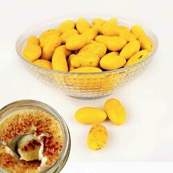 Cette dragée crême brulée vous surprendra avec son goût d'amande grillée, enrobée de chocolat blanc saveur crème brûlée et d’une fine couche de sucre.