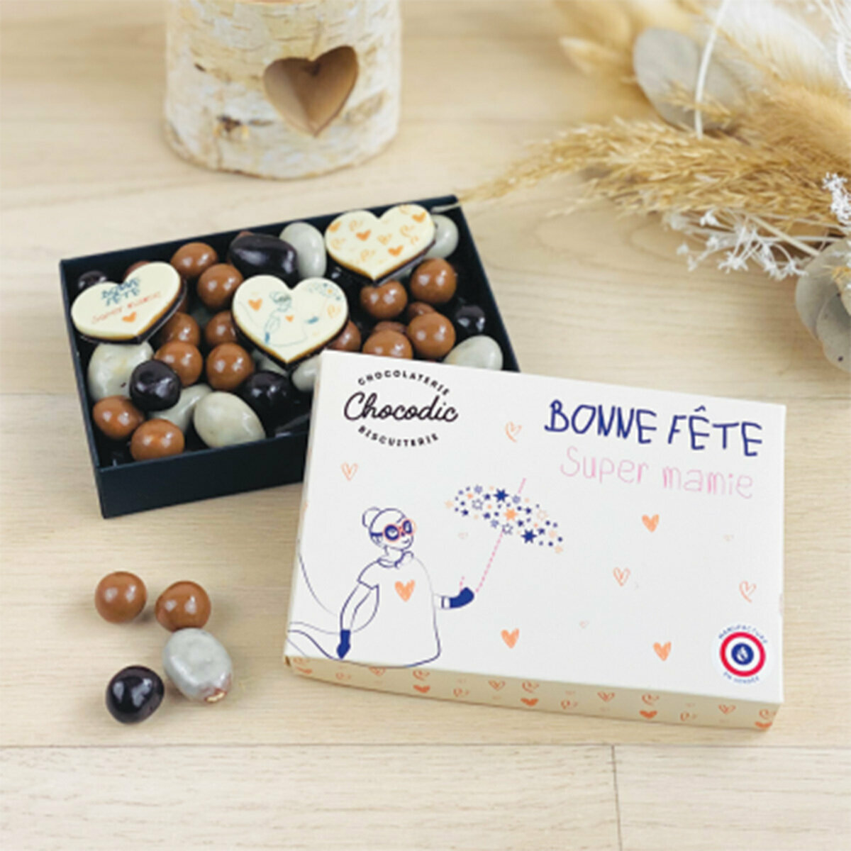 Pour la fête des grands-mères, Chocodic imagine des gourmandises uniques à personnaliser. Offrez par exemple un joli coffret tout en chocolat en forme de cœur !