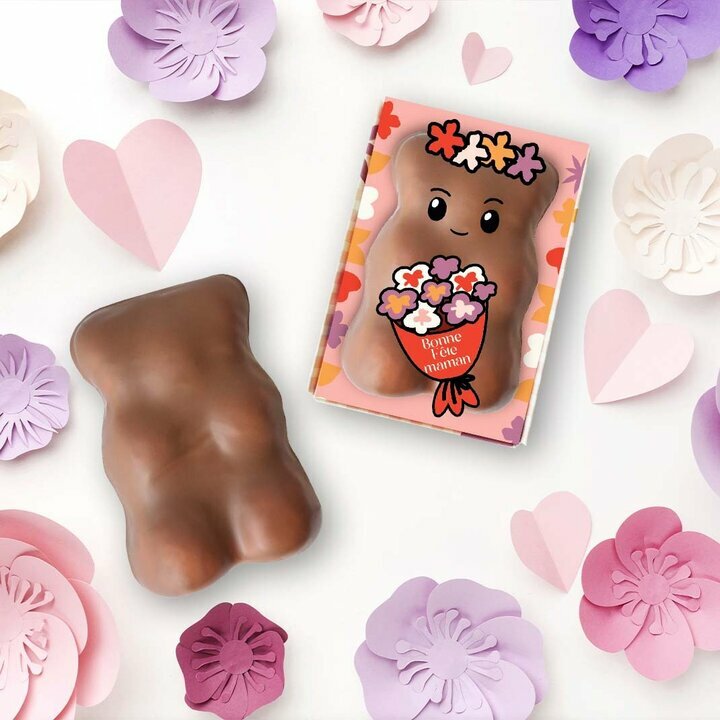 Pour célébrer la Fête des Mères ou la Fête des Mamies, optez pour un cadeau tendre et irrésistible : l’Ourson Guimauve XL. Ce délicieux ourson, généreusement garni d’une guimauve vanillée, est délicatement enrobé de chocolat au lait fondant, créant une alliance parfaite entre douceur et plaisir. C’est le cadeau idéal pour toucher le cœur de votre maman ou de votre mamie, en offrant un moment sucré et inoubliable de tendresse et de partage. Un geste plein d’affection qui saura émerveiller à la fois les papilles et les cœurs.