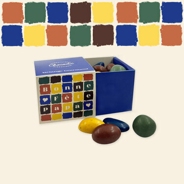 Pour remercier celui qui vous portait dans ses bras pour réconforter vos émois, celui qui vous apprenait la peinture, l’harmonica ou la lecture, offrez de délicieuses confiseries et sucreries personnalisés “Bonne fête Papa”.