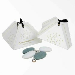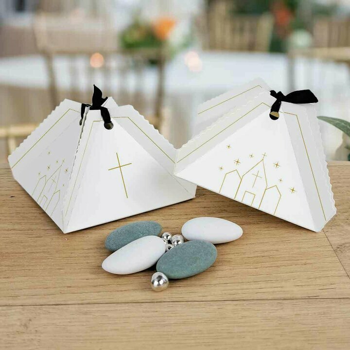 Une communion, une profession de foi ou un mariage à fêter ? Choisissez la collection Chapelle pour vos contenants à dragées. Idéal pour les fêtes religieuses, le thème Chapelle est sobre, illustré par une chapelle dessinée en couleur or. Elle s’intégrera facilement dans le décor d’une table de fête. Simple, elle permet d’y ajouter des dragées de couleurs ! Les contenants à dragées sur le thème Chapelle peuvent être offert en remerciement et comme souvenir aux convives !
