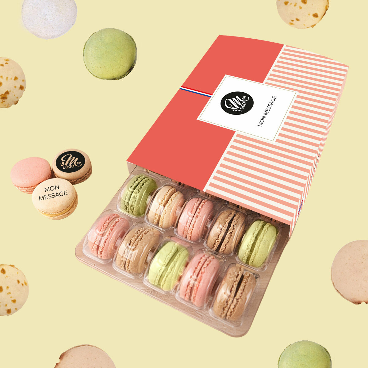 . Contenance : 20 macarons personnalisés