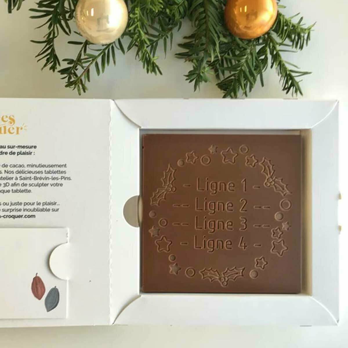 Offrir un cadeau devient une expérience inoubliable avec la carte à croquer "Couronne de Fête". Cette délicieuse tablette de chocolat n’est pas seulement un plaisir pour les papilles, mais aussi une attention personnalisée. Avec son design en forme de couronne festive et la possibilité d'inscrire un message unique, elle se démarque des cadeaux classiques en ajoutant une touche chaleureuse et personnelle à chaque occasion spéciale.