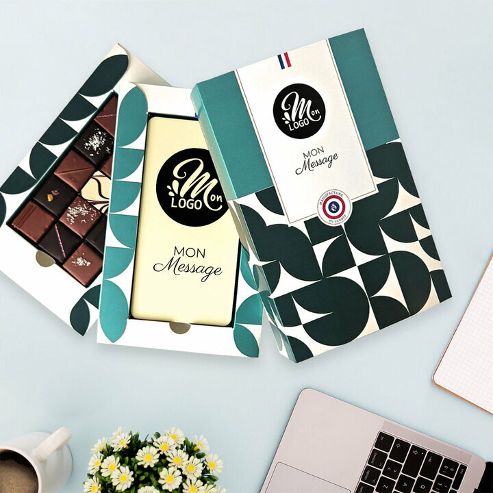 Coffret duo chocolat avec tablette personnalisé avec votre logo - Entreprise