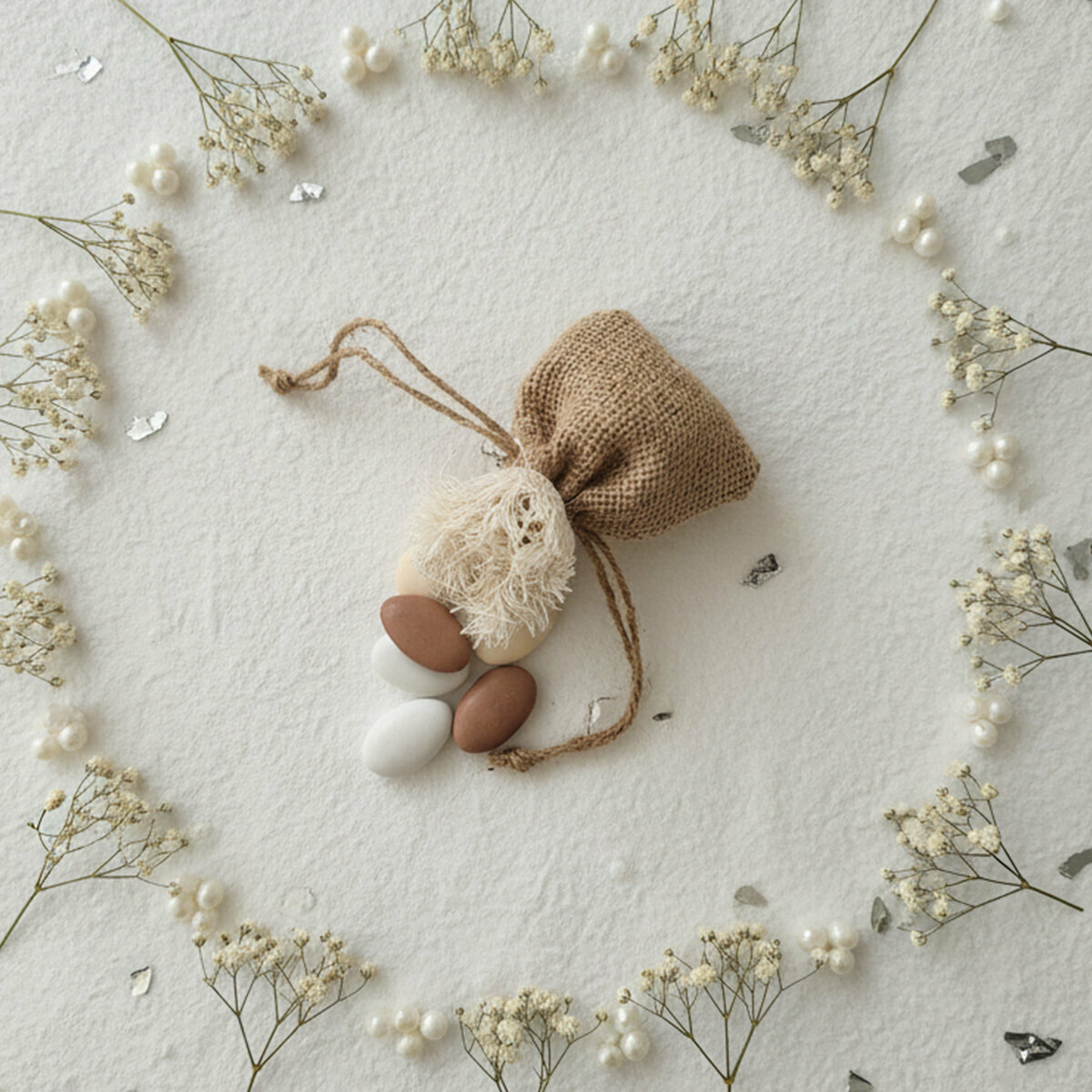 Le sac frange en jute se distingue par son style bohème chic. Les franges ajoutent une touche délicate et originale qui le différencie des pochons classiques. Contrairement aux contenants plus traditionnels, il mise sur la modernité et la tendance tout en restant simple et naturel. Associé à des dragées blanches, pastel ou colorées, il crée un rendu harmonieux qui attire l’œil et embellit vos tables.