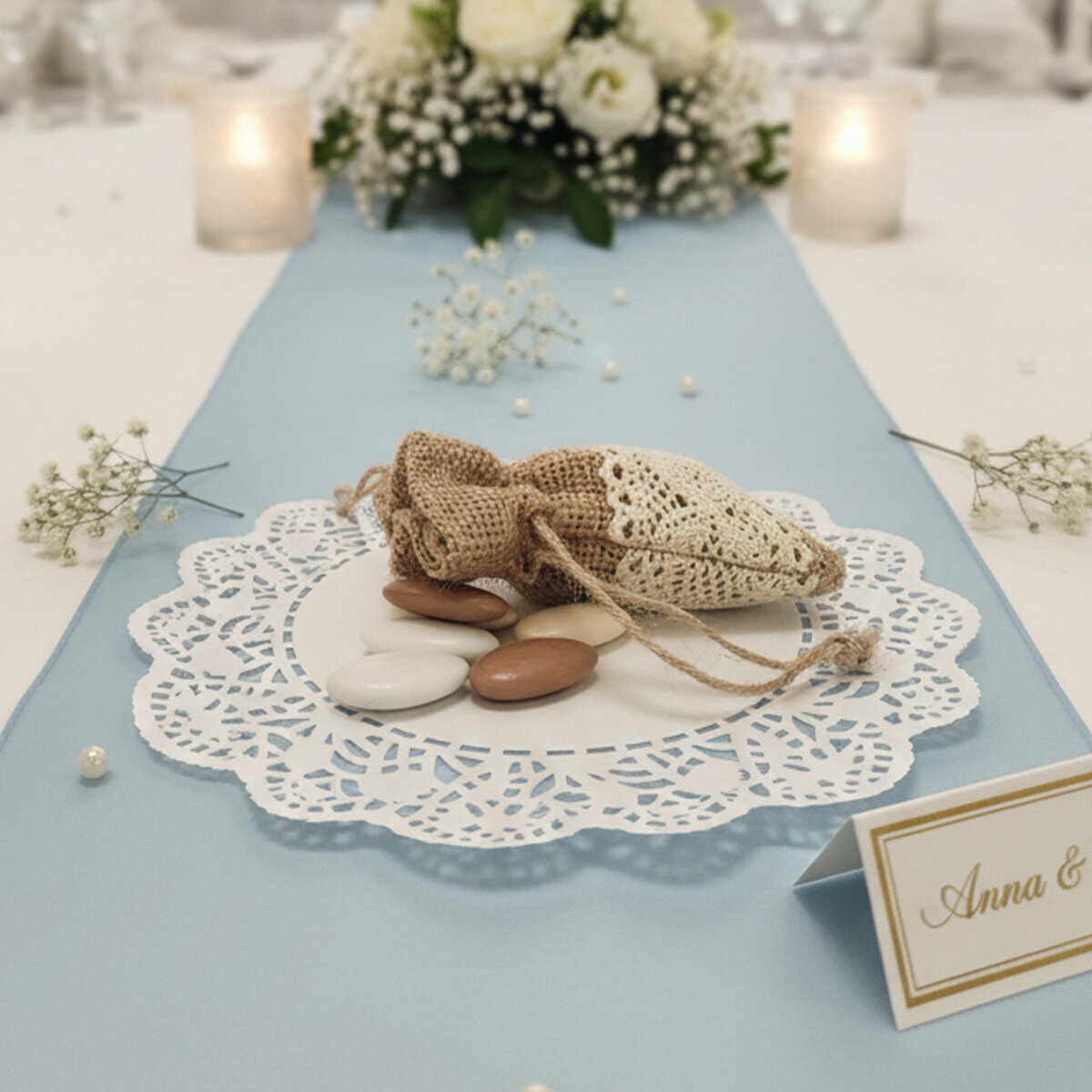 En offrant un sac dentelle en jute garni de dragées, vous proposez à vos invités plus qu’une simple gourmandise : un souvenir précieux. Ce petit sac devient un cadeau personnalisé que chacun pourra conserver. Ajoutez-y une étiquette avec le prénom de l’enfant baptisé, des mariés ou la date de l’événement pour en faire un objet unique. Vous pouvez également l’agrémenter de rubans, fleurs séchées ou petits charms pour l’adapter à votre décoration.