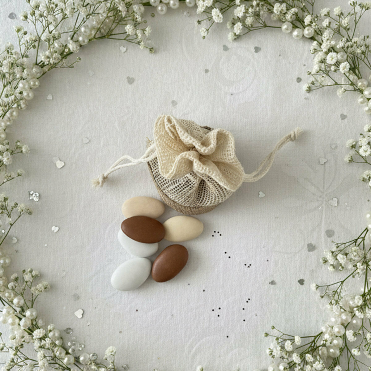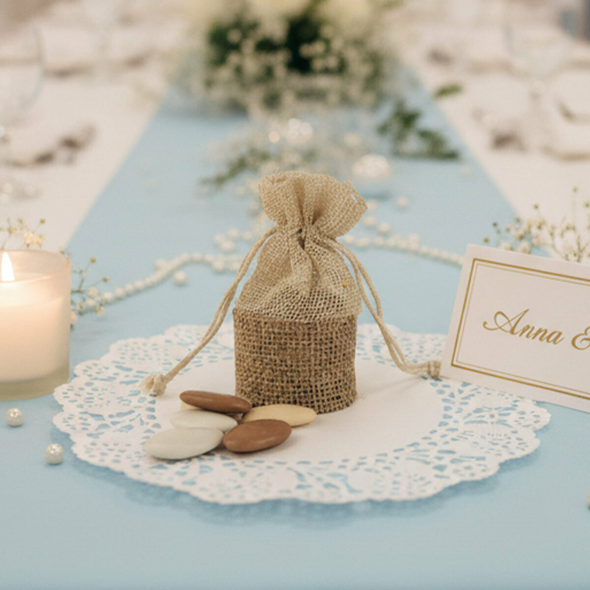 Offrir un cylindre en jute garni de dragées, c’est offrir à vos invités bien plus qu’une gourmandise : c’est un véritable souvenir personnalisé. Vous pouvez le décorer selon votre thème en y ajoutant un ruban coloré, une étiquette nominative, un petit accessoire décoratif ou même des fleurs séchées. Chaque contenant devient ainsi un cadeau unique, pensé spécialement pour vos convives, qui repartiront avec une délicate attention en mémoire de votre événement.