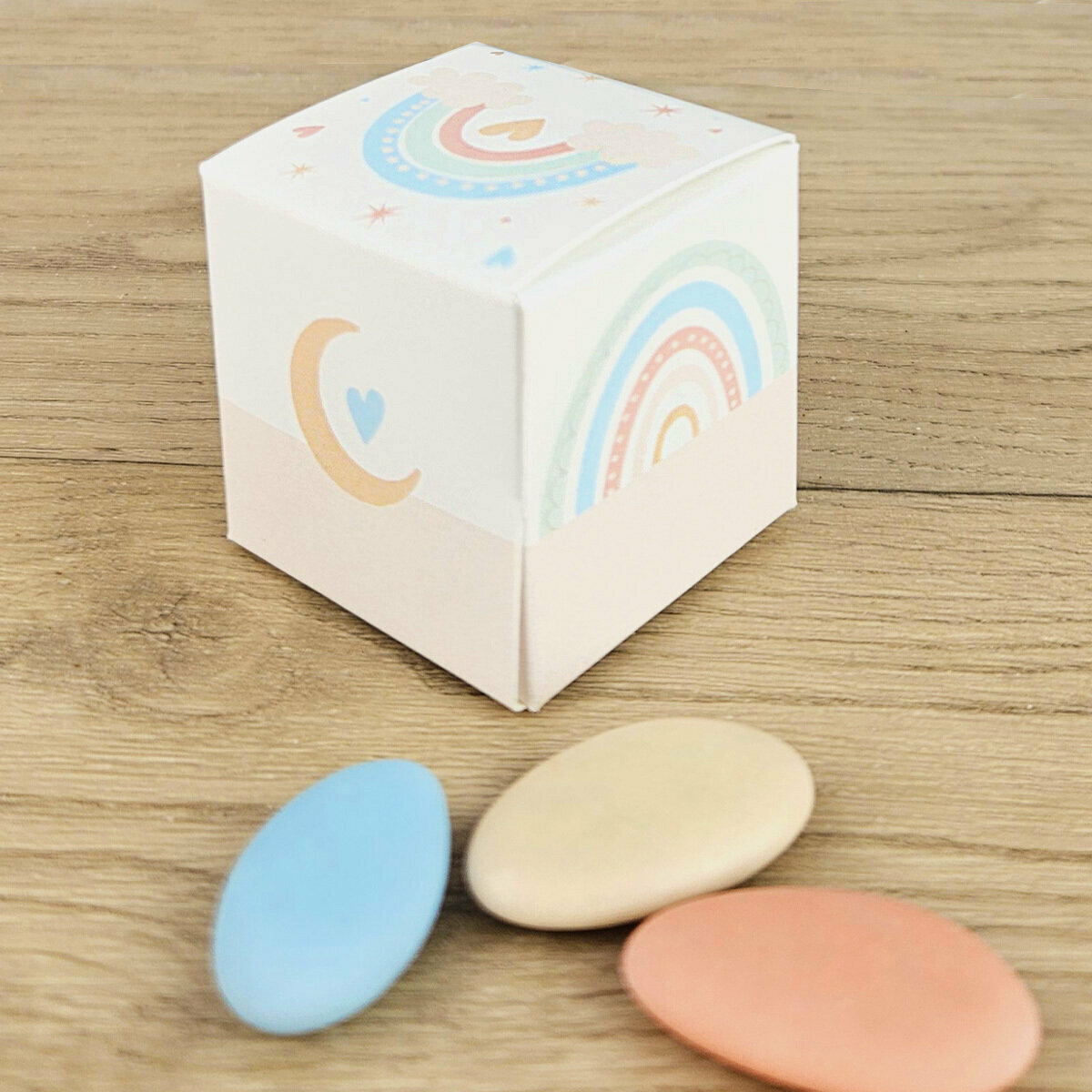 🌈 Boîte à dragées cube – Thème Arc-en-ciel : une création douce et lumineuse
