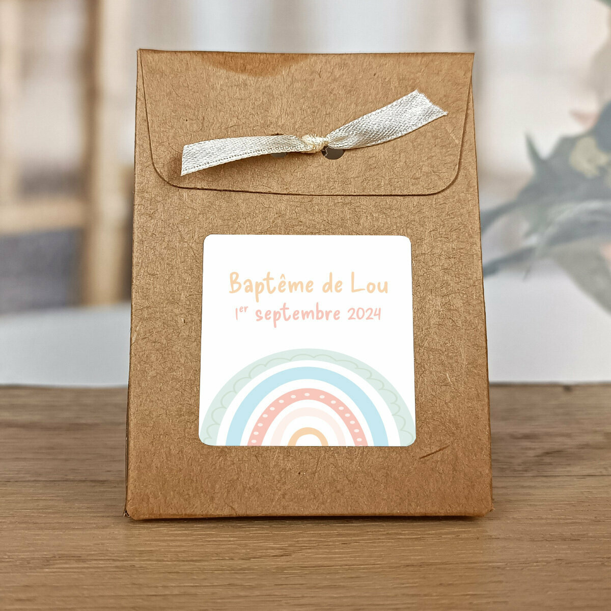 Découvrez notre étiquette carrée autocollante – thème Arc-en-ciel 🌈, idéale pour apporter une note colorée et joyeuse à vos baptêmes, mariages, baby showers ou anniversaires.