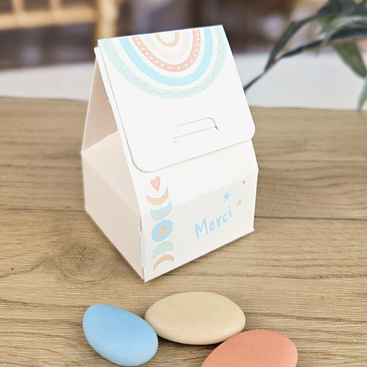 Apportez une touche de magie et de gaieté à vos fêtes d’enfants avec notre boîte à dragées Lola – thème Arc-en-ciel 🎉.