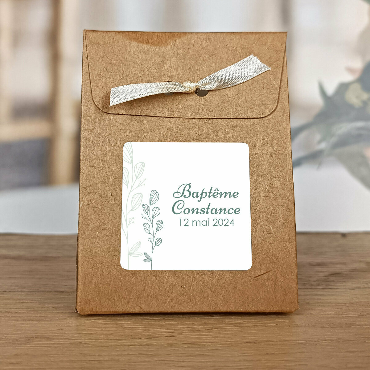 Les étiquettes carrées autocollantes Eucalyptus apportent une note naturelle et délicate à vos célébrations :