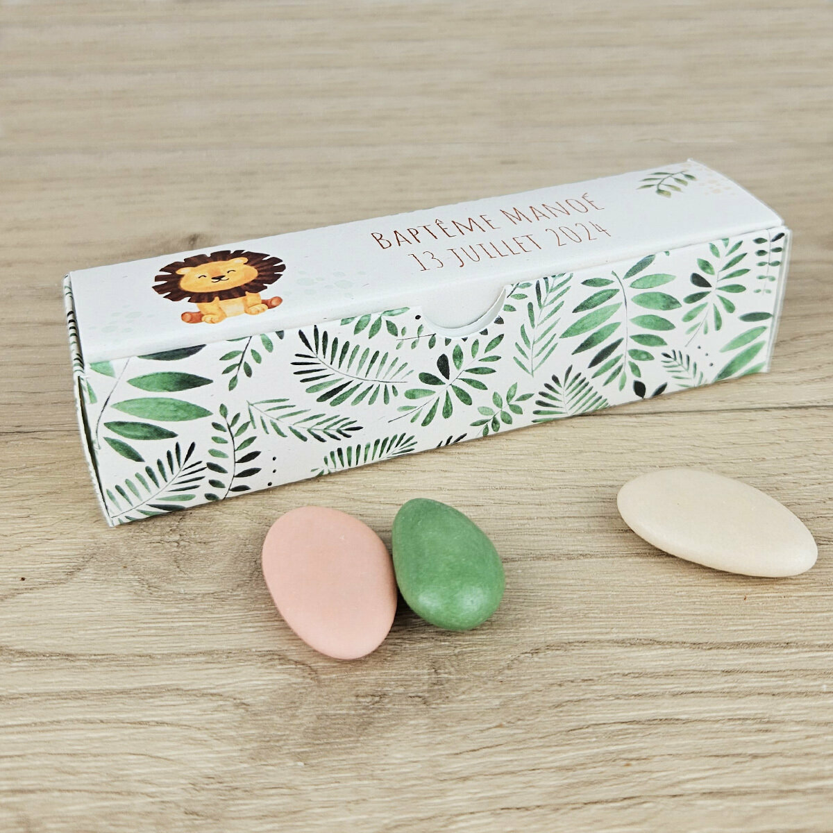 Caractéristiques : Boîte à dragées Etui ''Jungle'' personnalisée