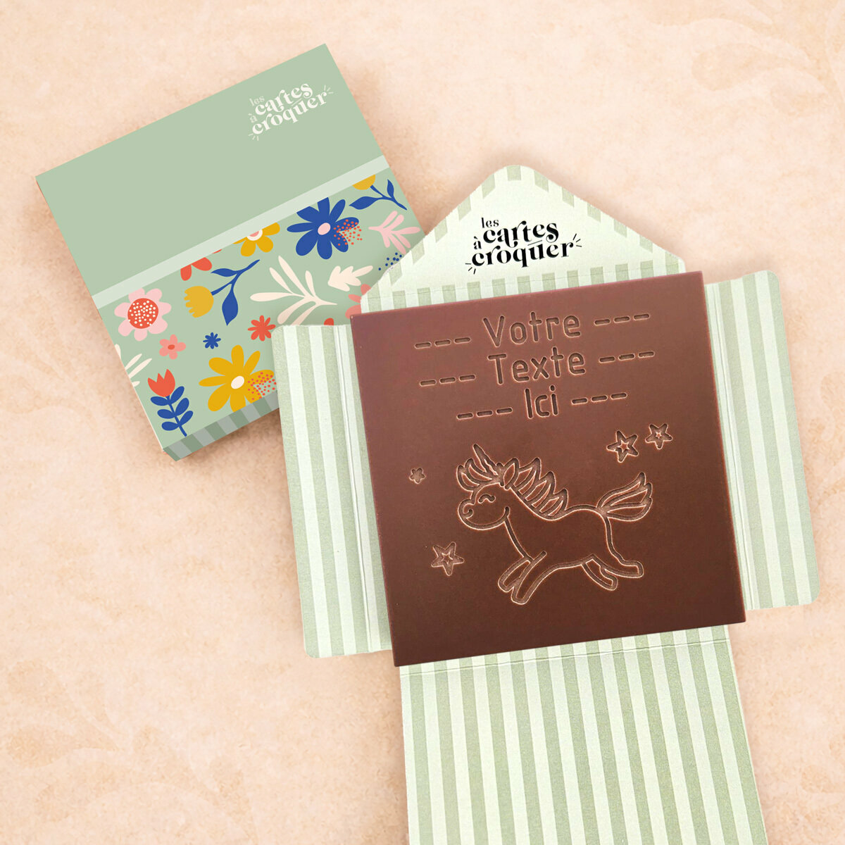 Carte à Croquer - Modèle Licorne Chocolat Lait Enveloppe Modèle Fleurs