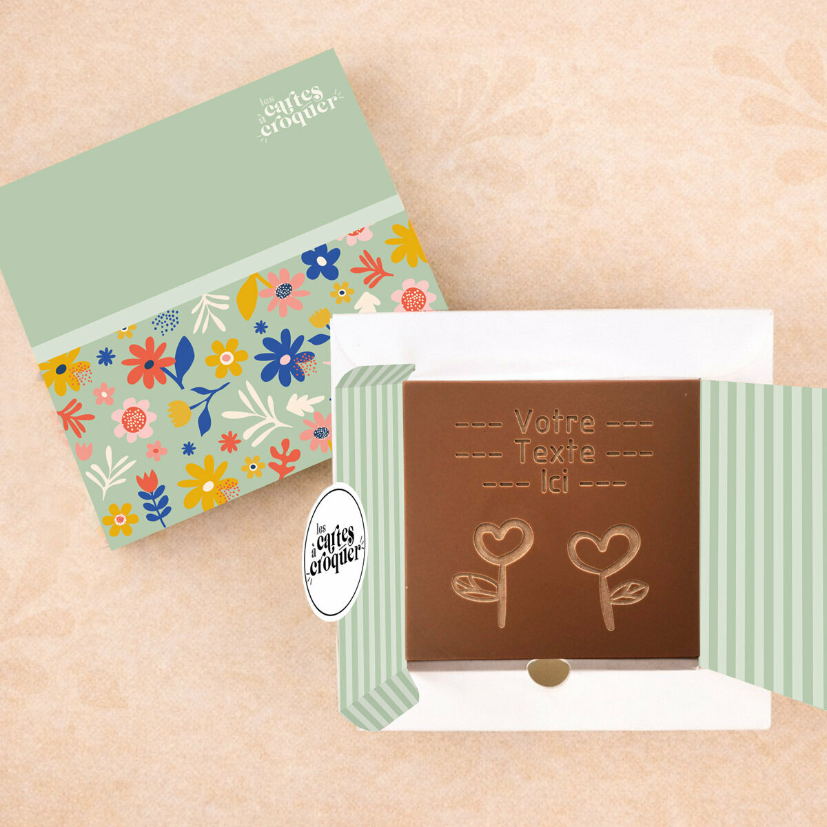 La Carte à Croquer - Modèle Fleurs Cœurs ne se contente pas d’être belle : elle séduit également les papilles. La texture fondante et le goût riche du chocolat offrent un moment de dégustation unique. En combinant l’esthétique et le plaisir gustatif, cette carte transforme un simple geste en une expérience mémorable, capable de créer des souvenirs durables.