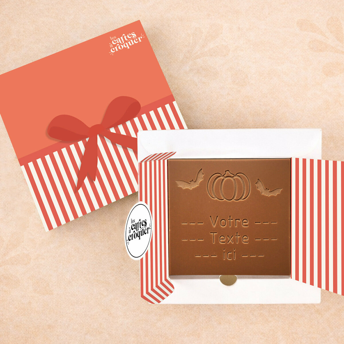 Au-delà de son apparence festive, cette carte offre une expérience sensorielle complète. Le chocolat fond doucement en bouche, libérant des saveurs riches et délicates. La gravure de la citrouille, des chauves-souris et de votre message personnalisé ajoute une touche émotionnelle et unique. Chaque bouchée devient un moment de plaisir et de complicité, transformant un simple geste en un souvenir gourmand et mémorable.